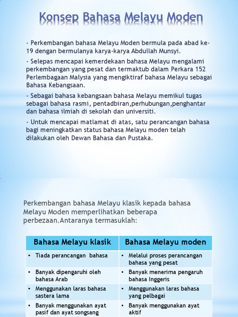 Bm Konsep Bahasa Melayu Moden