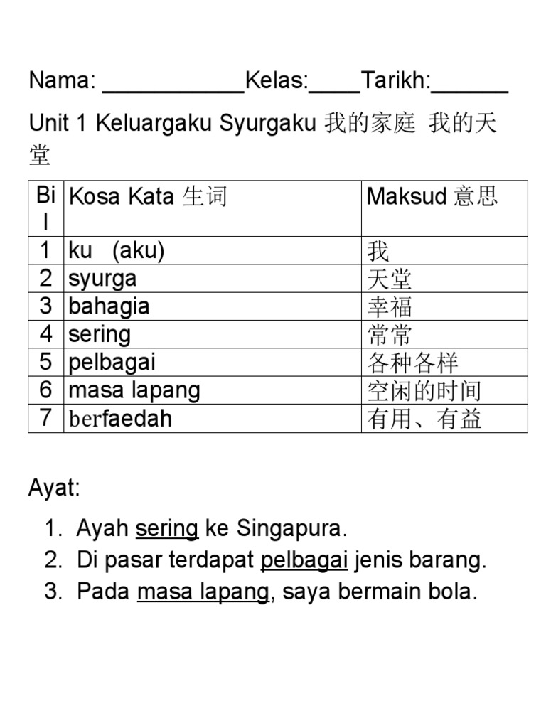 Kosa Kata Bahasa Melayu Tahun 3 Sjkc