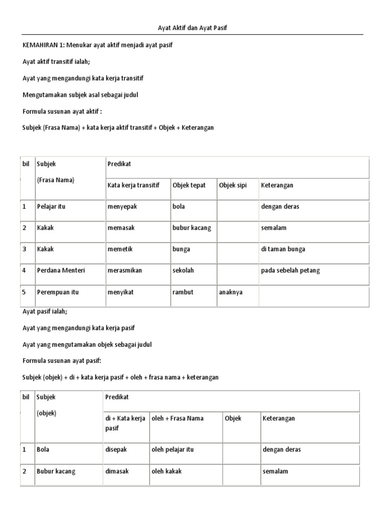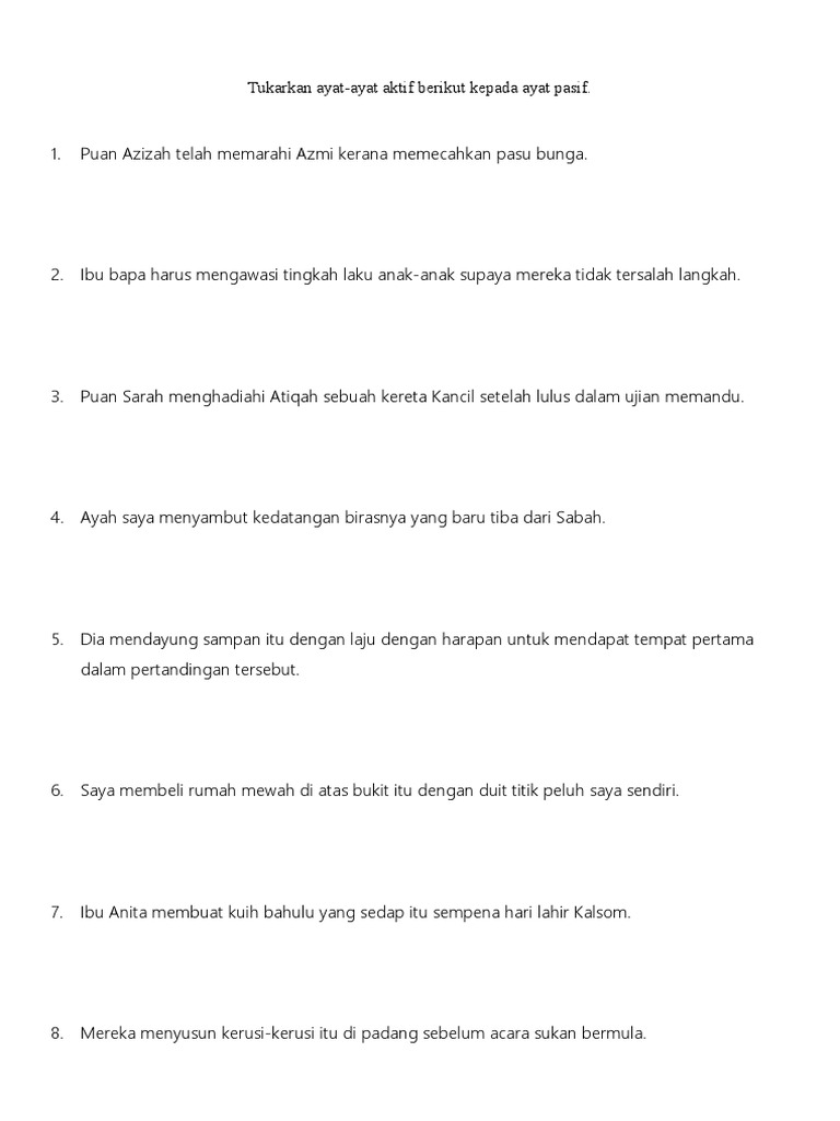 Latihan Ayat Aktif Dan Ayat Pasif Pt3 Pdf
