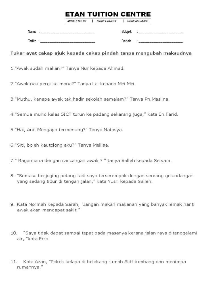 Latihan Cakap Ajuk Dan Cakap Pindah Tahun 5