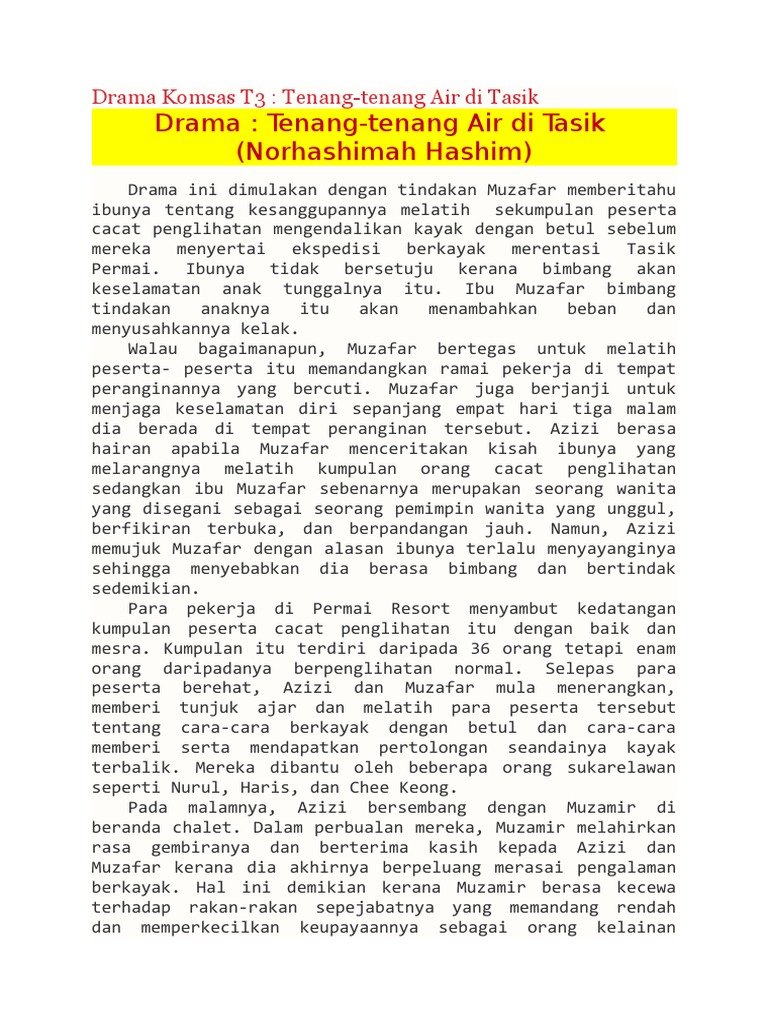 Sinopsis Tenang Tenang Air Di Tasik Docx