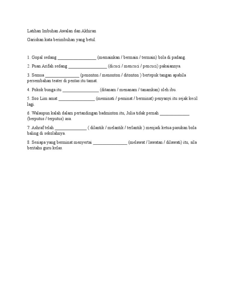 Latihan Imbuhan Awalan Dan Akhiran