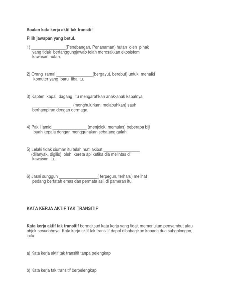 Latihan Kata Kerja Tak Transitif Tingkatan 1