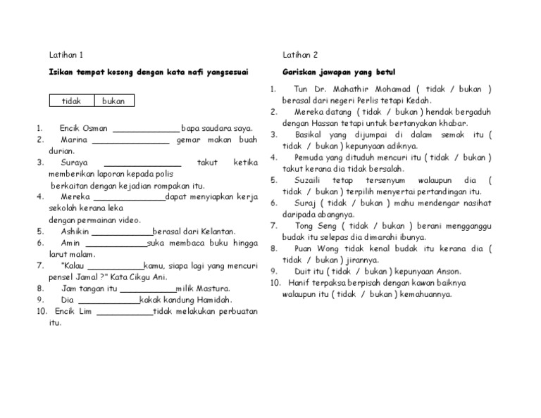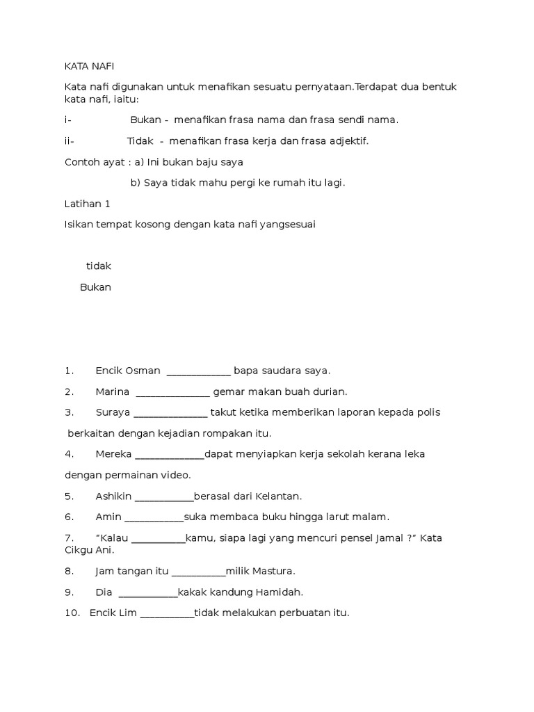 Latihan Kata Nafi Dan Kata Pembenar