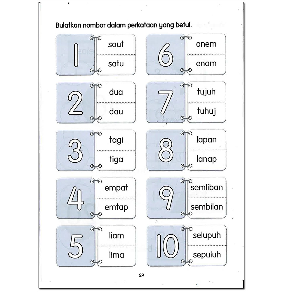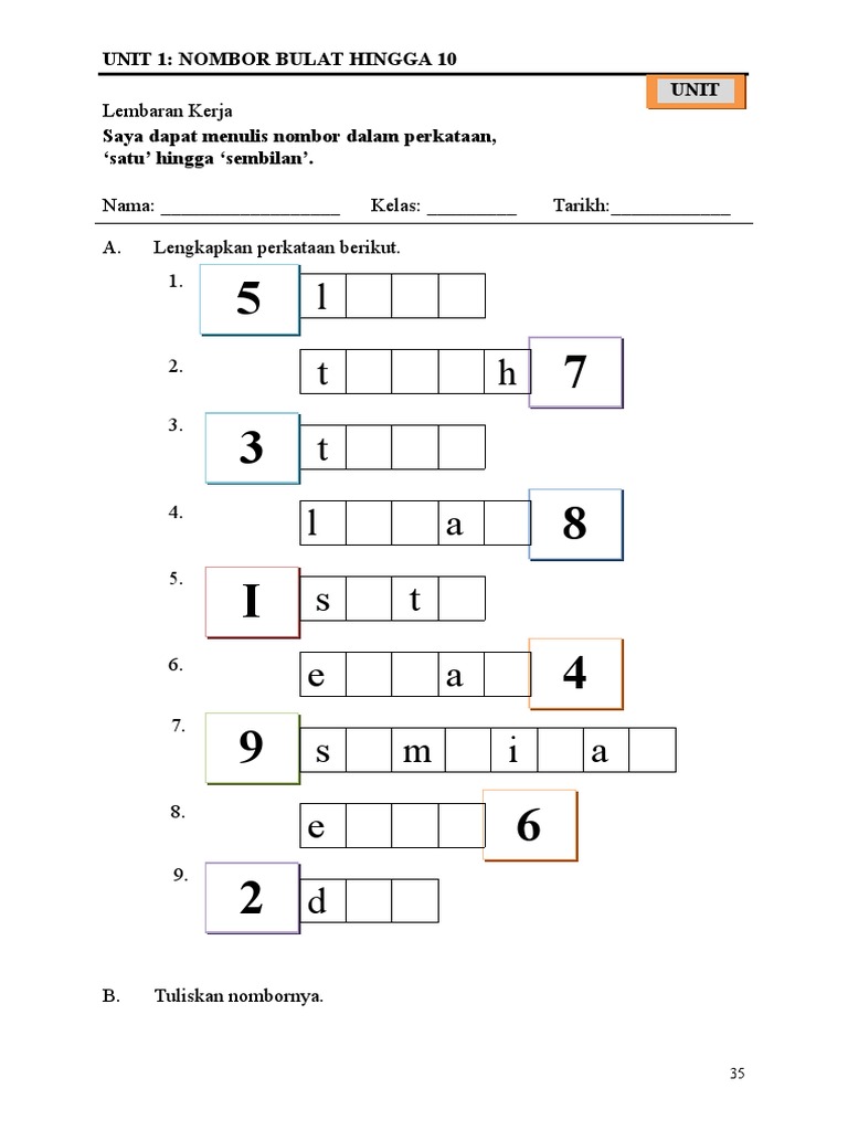 Latihan Menulis Nombor Dalam Perkataan Prasekolah