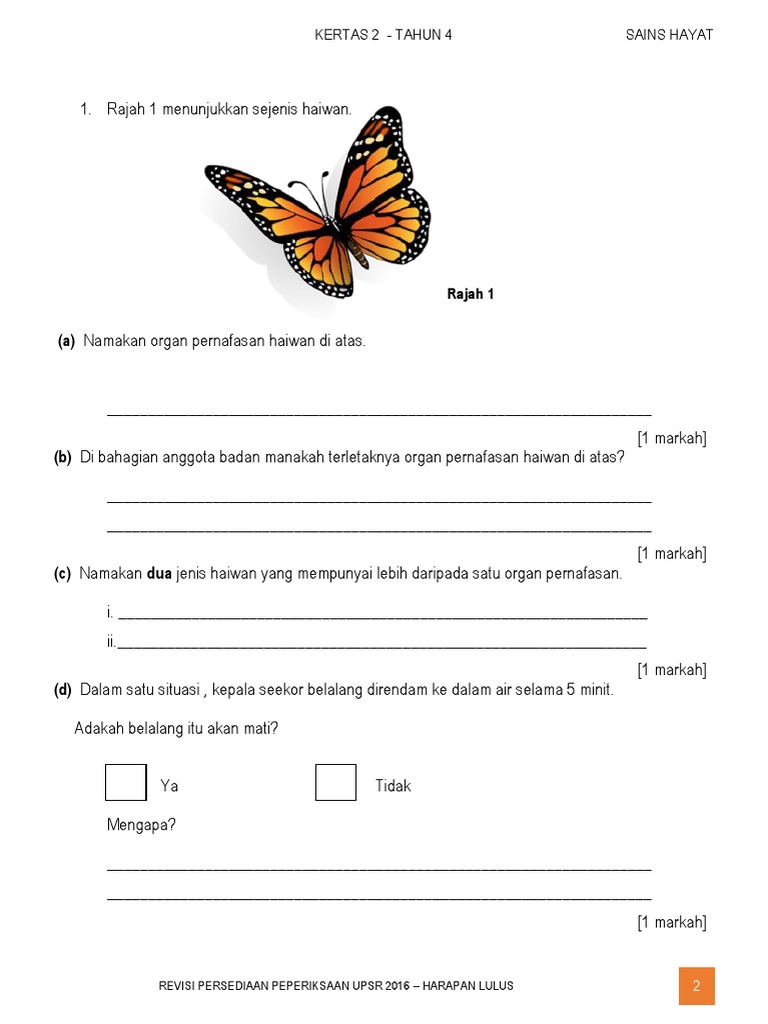 Latihan Sains Tahun 4 Organ Pernafasan Haiwan