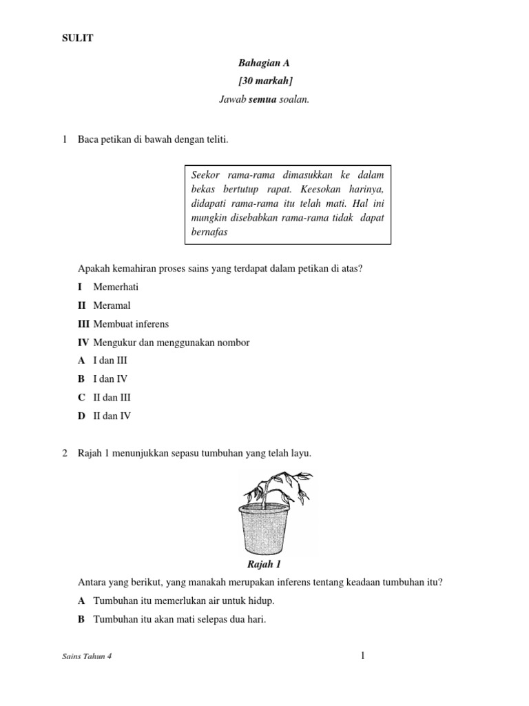 Soalan Sains Tahun 4 Proses Hidup Tumbuhan Lamaran M