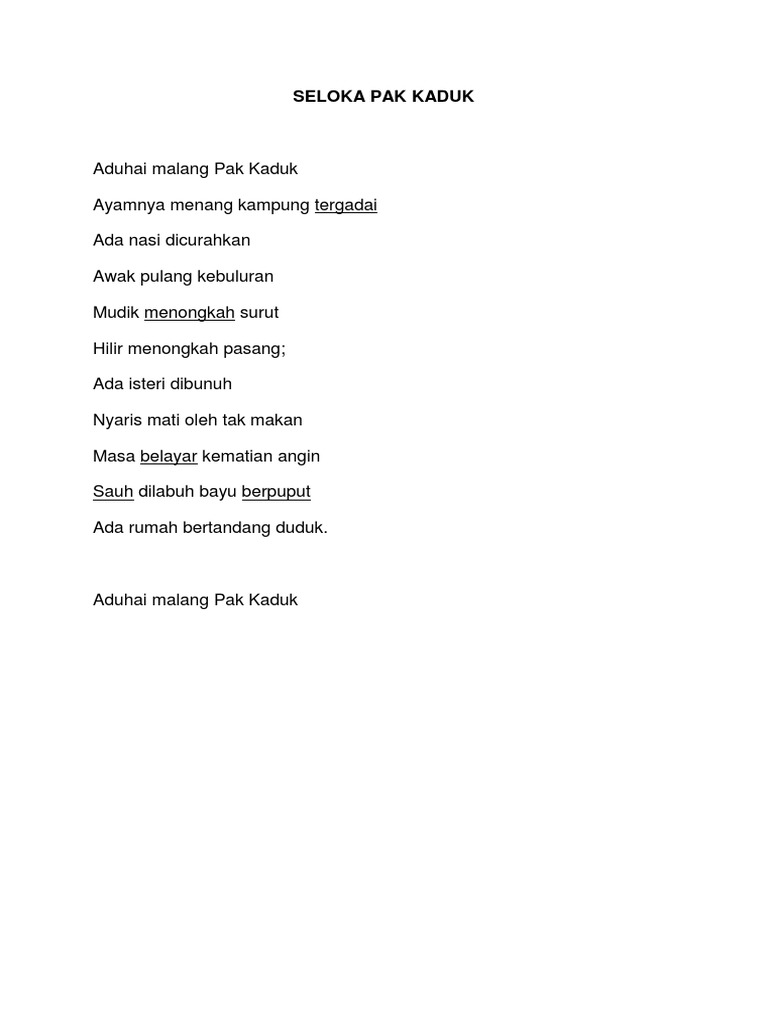 Puisi Tradisional Seloka Pak Kaduk Youtube