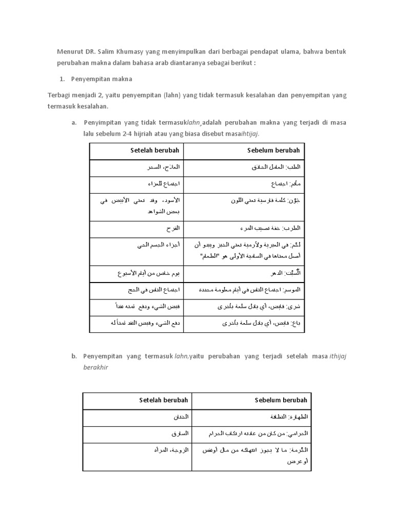 Bentuk Perubahan Makna Dalam Bahasa Arab