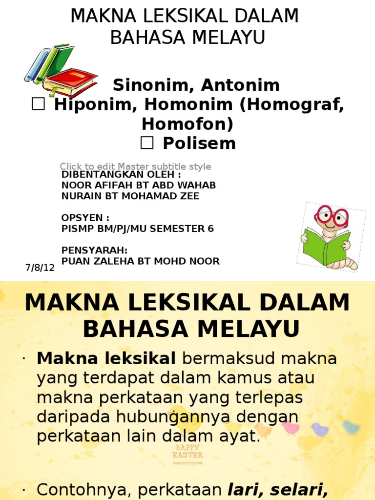 14 Makna Leksikal Dalam Bahasa Melayu Antonim Hiponim Homonim Homograf Homofon Course Hero