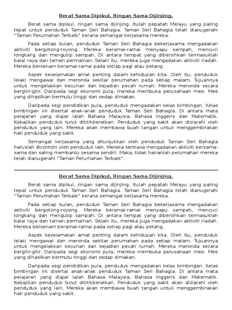 Maksud Berat Sama Dipikul Ringan Sama Dijinjing Karangan