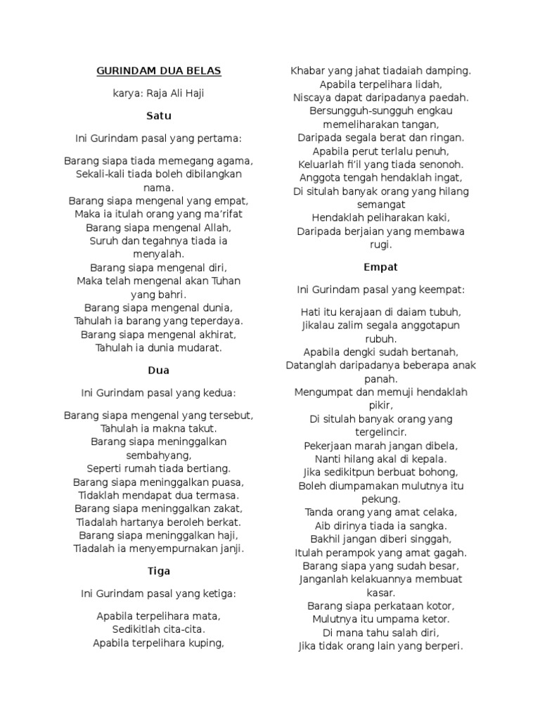 Soalan Gurindam Dua Belas Fasal Ketiga Selangor L
