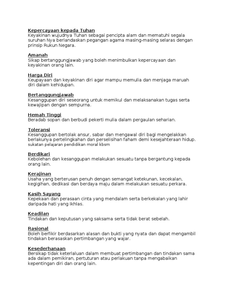 Nilai Amp Kata Kunci Morals Nilai Tanda