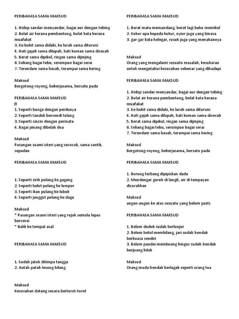 Berat sama dipikul ringan sama dijinjing 6. Previous post sebelumnya bulat air kerana pembetung bulat manusia kerana muafakat. Peribahasa sama maksud 1. Bukit sama didaki lurah sama dituruni.