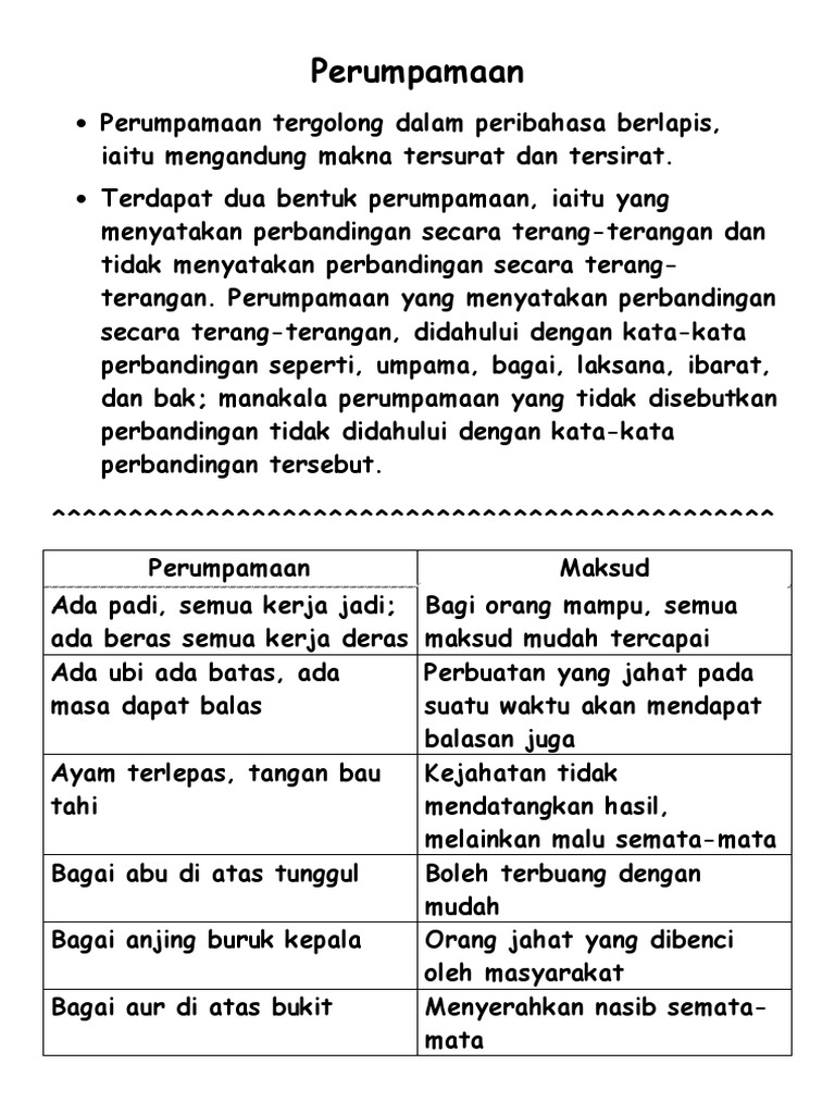 Nota Bahasa Melayu Sekolah Rendah Nota Perumpamaan