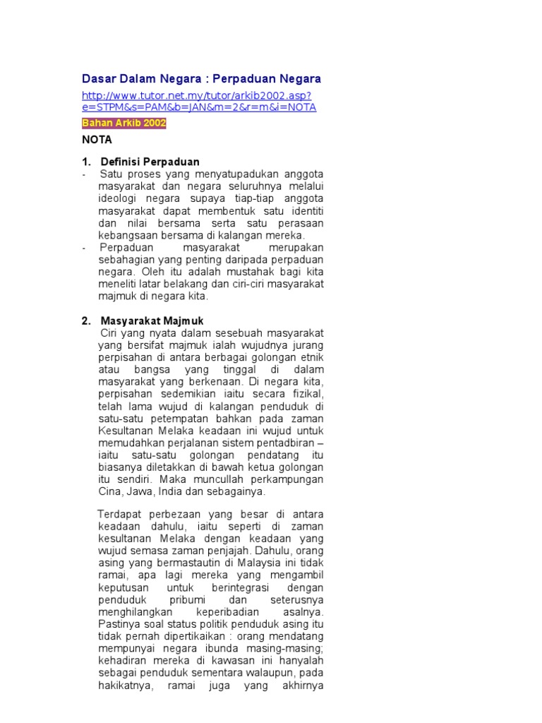 Asigment Kenegaraan Kontrak Sosial Membentuk Perpaduan