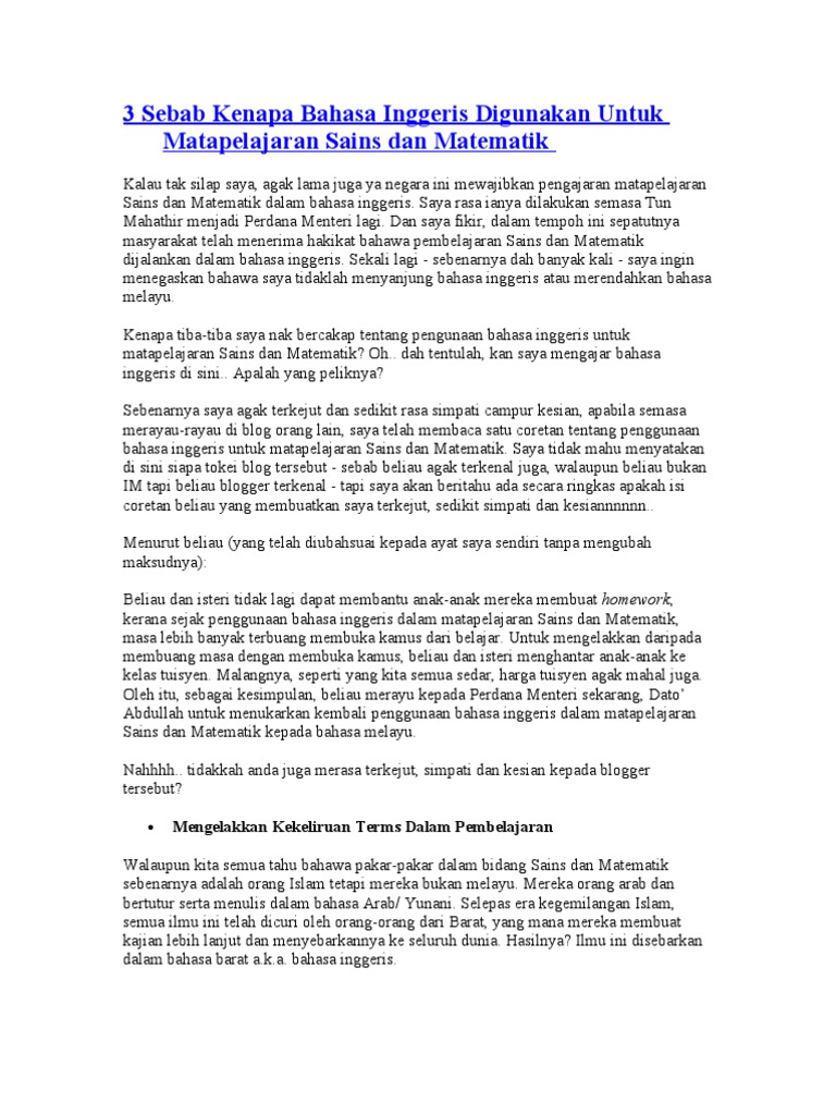 3 Sebab Kenapa Bahasa Inggeris Digunakan Untuk Matapelajaran