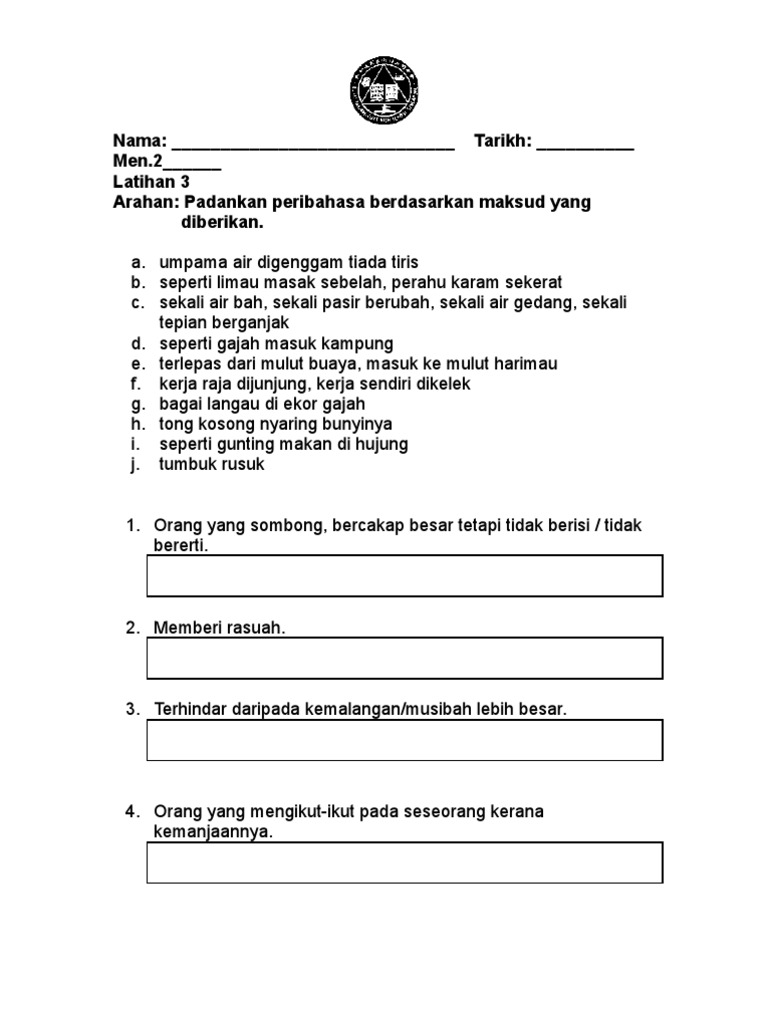 Nama Tarikh Men 2 Latihan 3 Arahan Padankan Peribahasa Berdasarkan Maksud Yang Diberikan