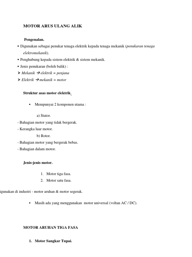 Motor Arus Ulang Alik Satu Fasa By Aswani Adham