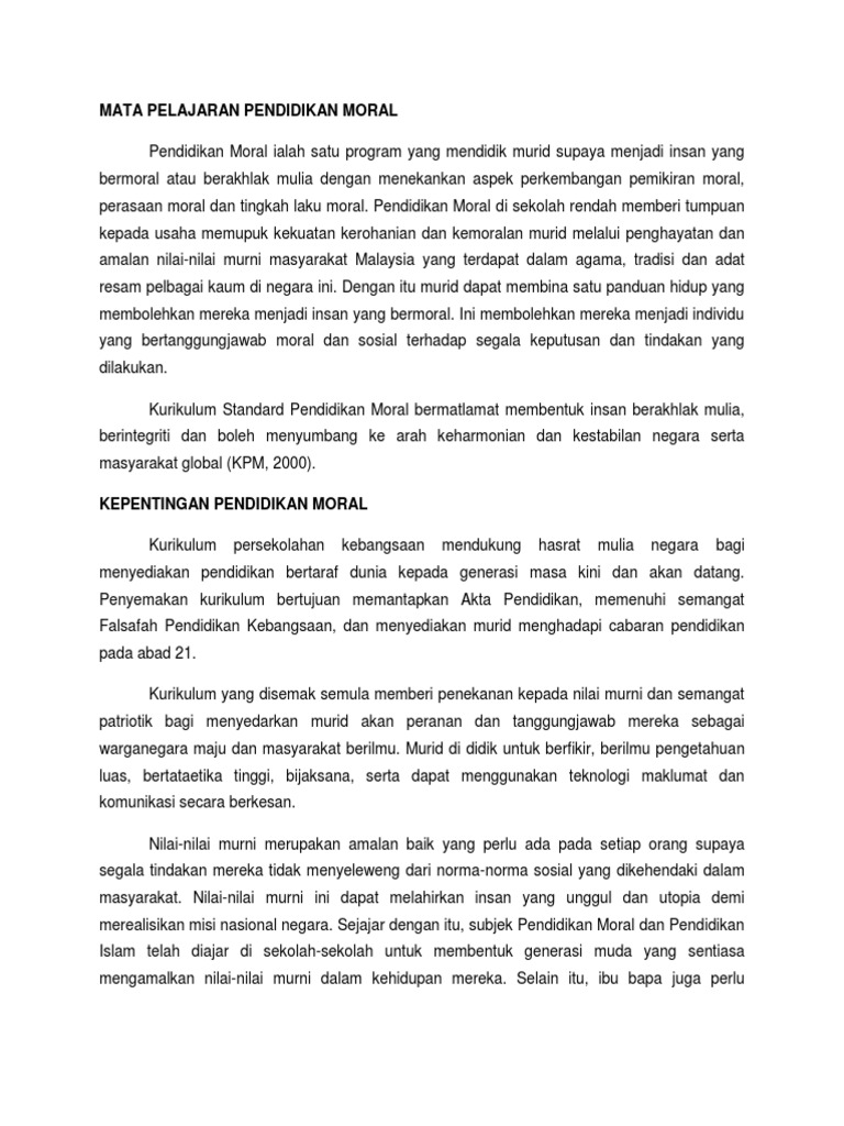 Pdf Pendidikan Moral Di Malaysia Tantangan Dan Implementasi Pendidikan Karakter Di Sekolah Indonesian