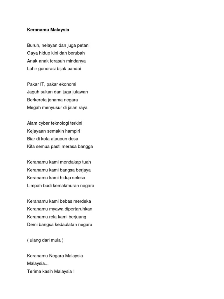 Lirik Lagu Keranamu Malaysia Lagu Patriotik