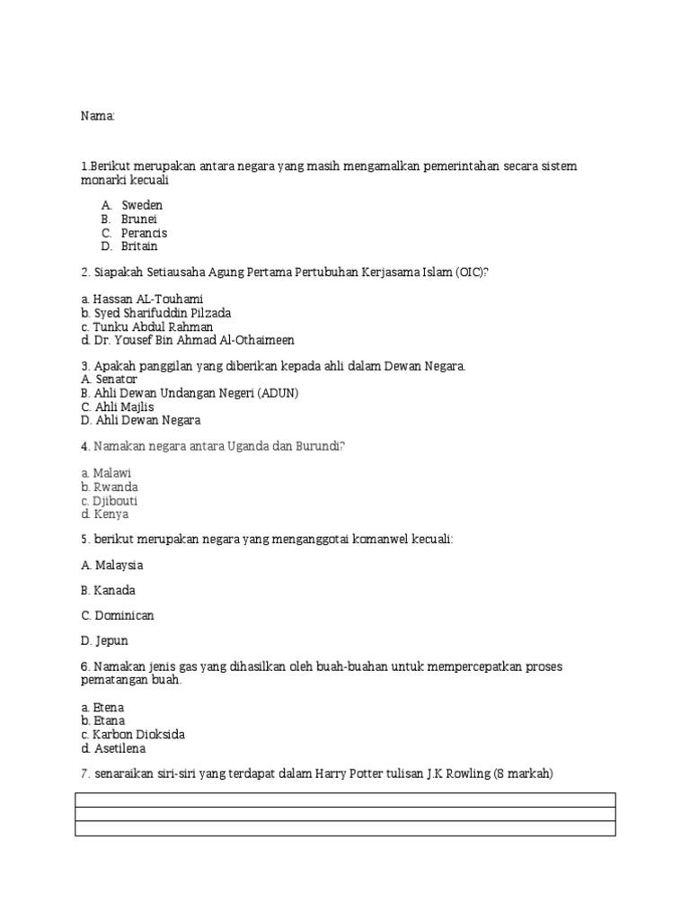 Namakan Negara Antara Uganda Dan Burundi A Malawi B Rwanda C Djibouti D Kenya