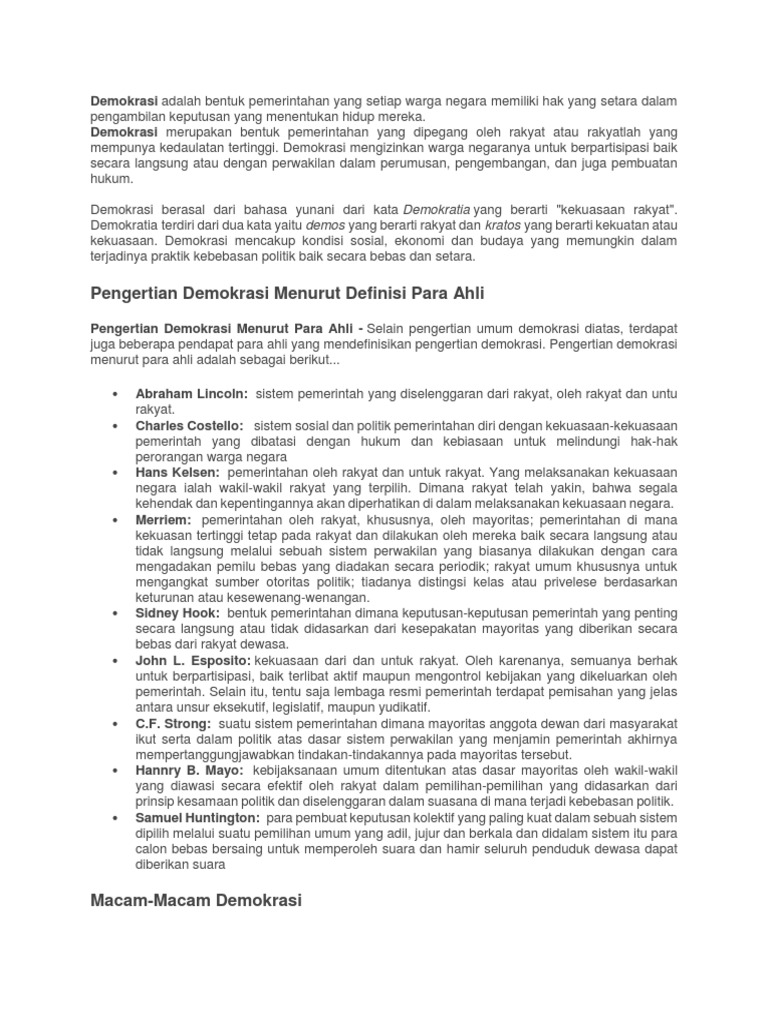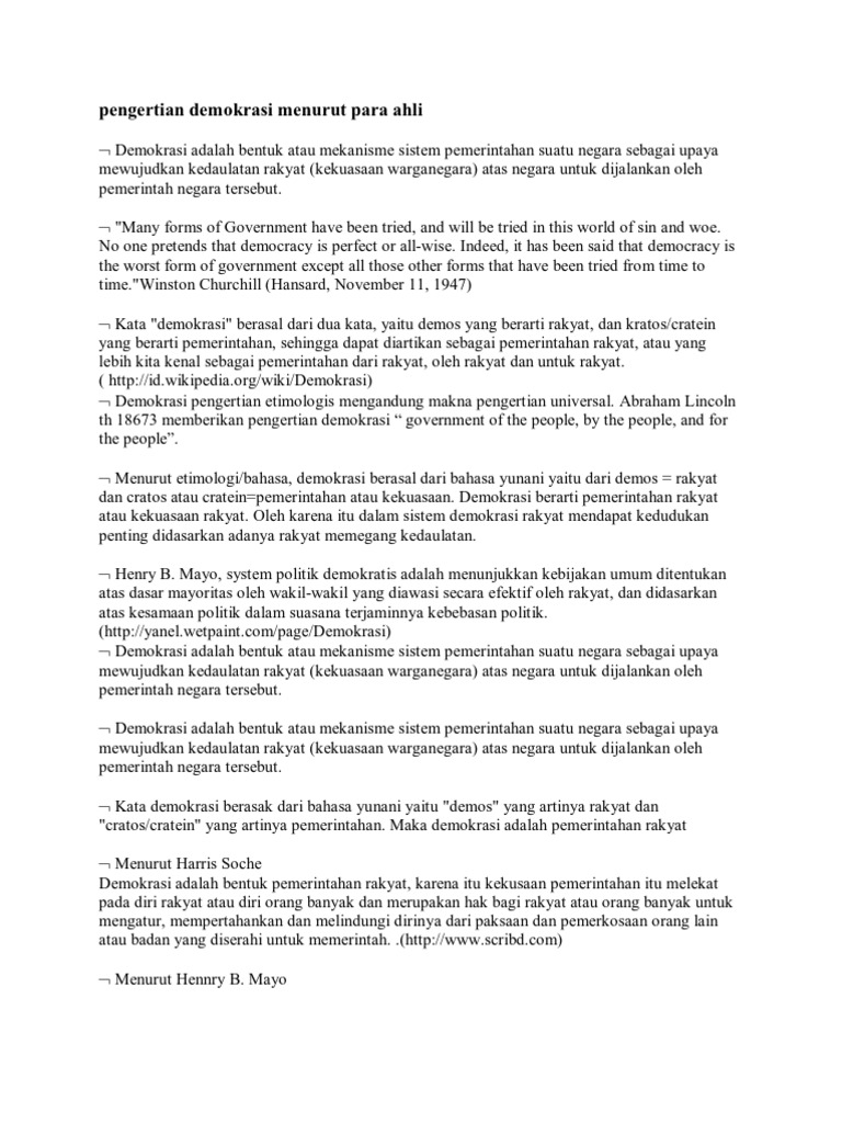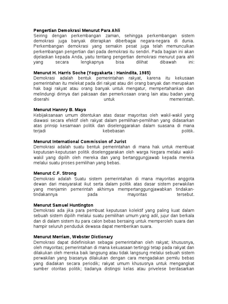Pengertian Demokrasi Menurut Para Ahli Docx