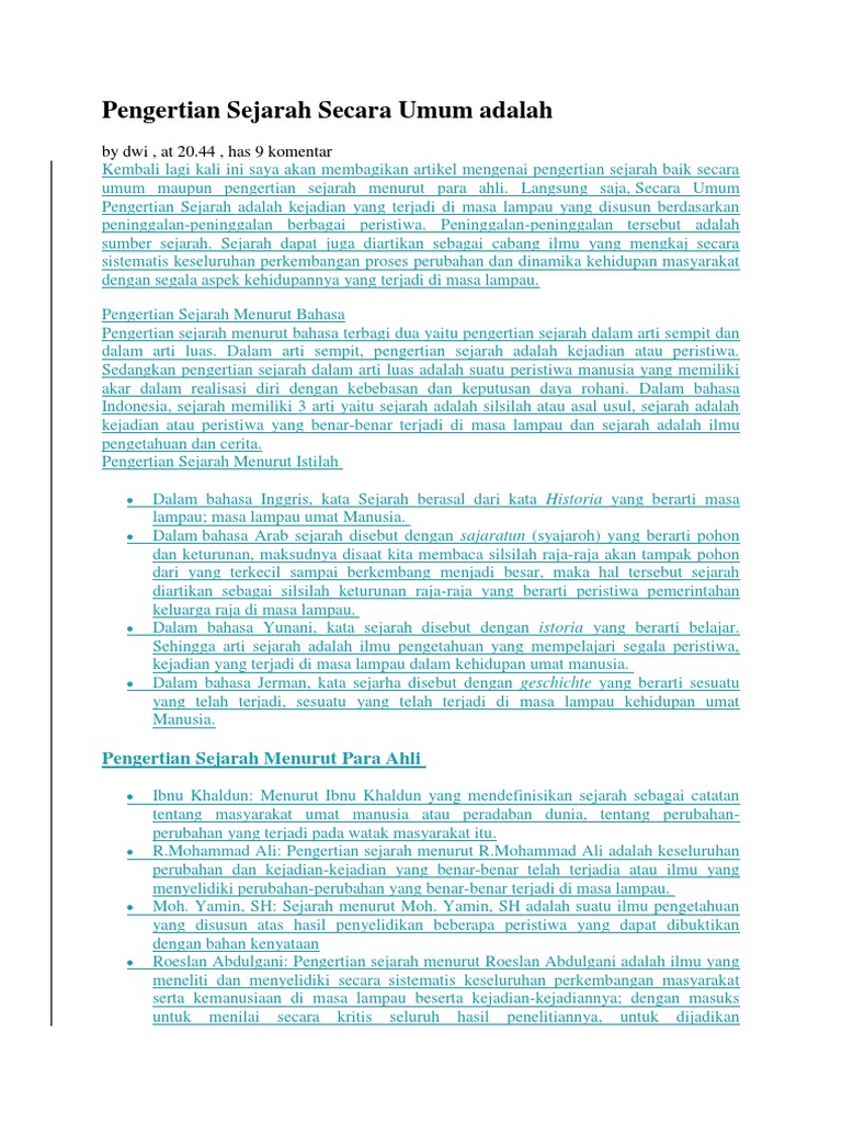 Pengertian Sejarah Secara Umum Kbbi Menurut Ahli