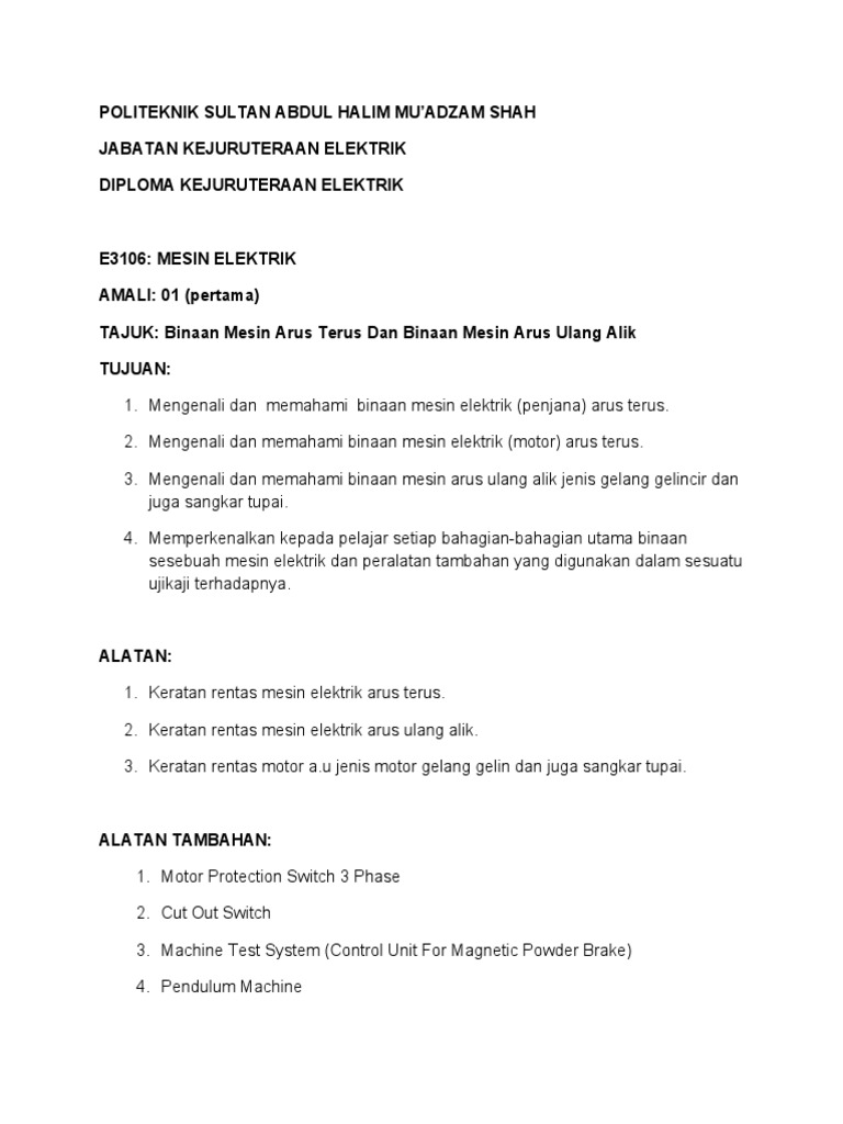 Amali Pengenalan Mesin Elektrik Motor Dan Penjana