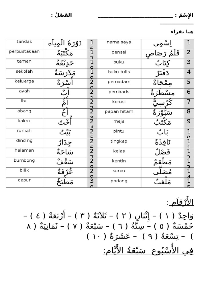 Label Bilik Khas Bangunan Sekolah Dalam Bahasa Arab