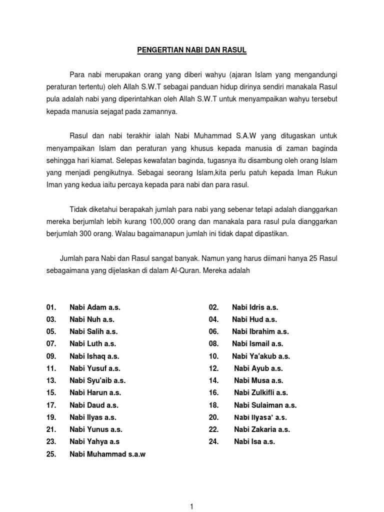 Perbezaan Antara Nabi Dan Rasul Azhan Co
