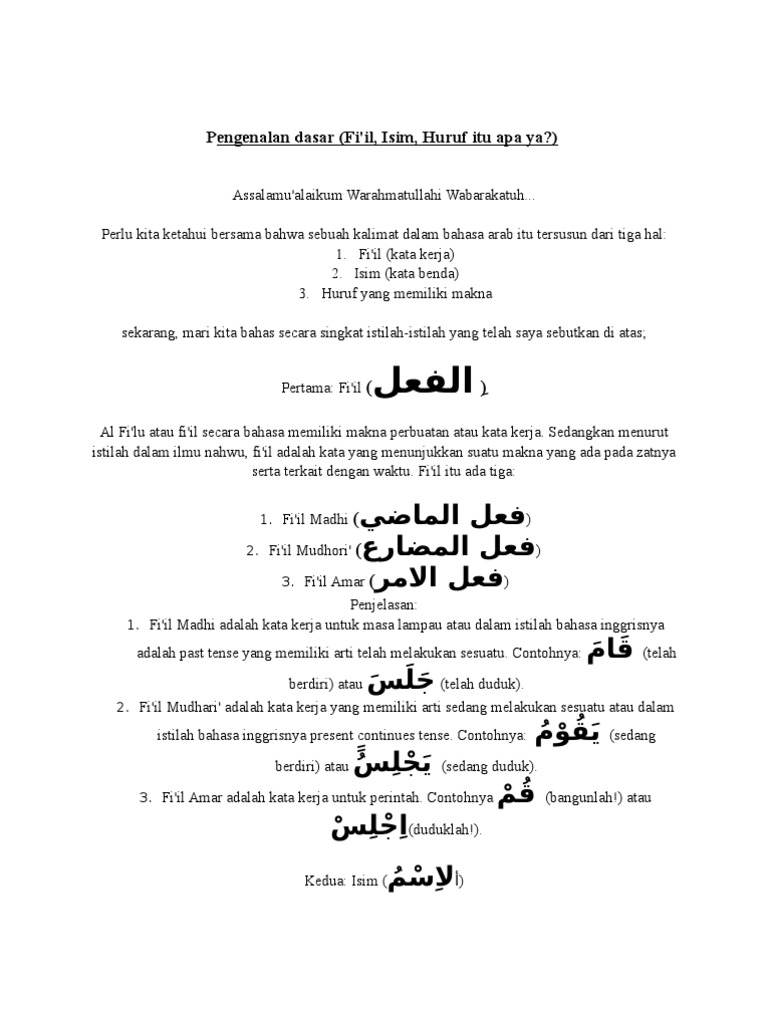 Fi Il فعل Kata Kerja Bahasa Arab Dan Macam Macamnya