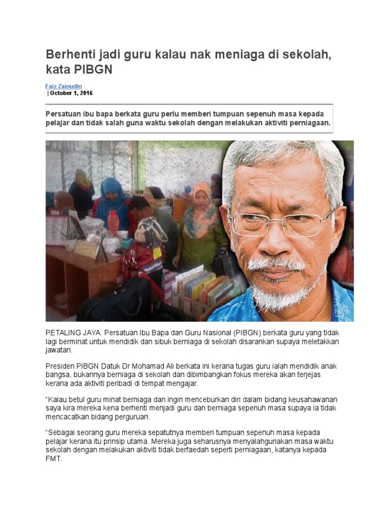Bernama Radio Berhenti Jadi Guru Kalau Nak Meniaga Di Sekolah Persatuan Ibu Bapa Dan Guru Nasional Pibgn Berkata Guru Yang Tidak Lagi Berminat Untuk Mendidik Dan Sibuk Berniaga Di Sekolah Disarankan