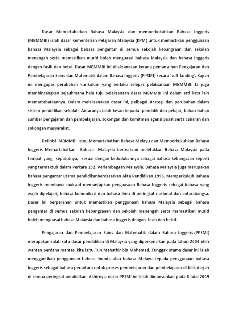 Dasar Memartabatkan Bahasa Malaysia Dan Memperkukuhkan Bahasa Inggeris