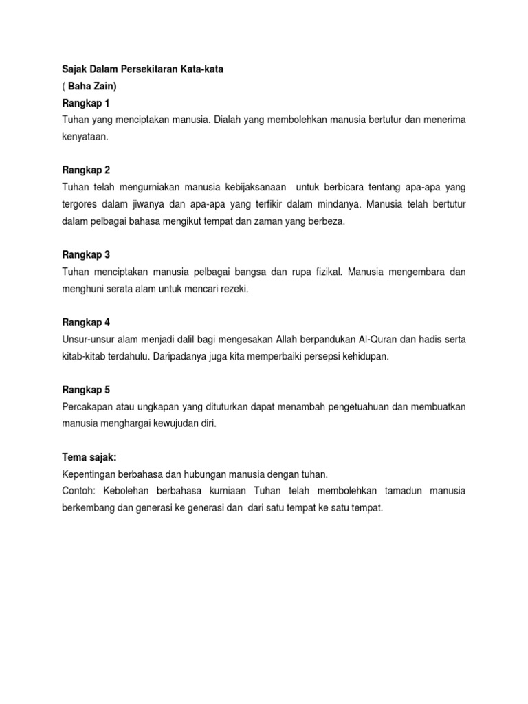 Sajak Dalam Persekitaran Kata Kata K Maksud Tema Persoalan Gaya Bahasa Nilai Pengajaran Bumi Gemilang
