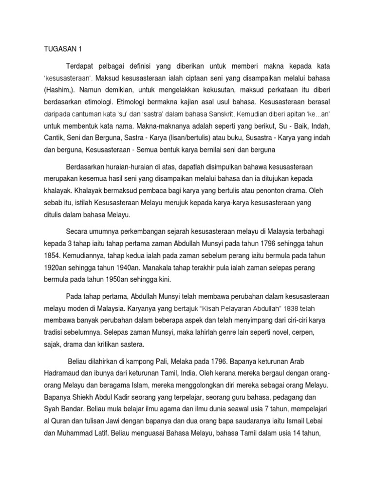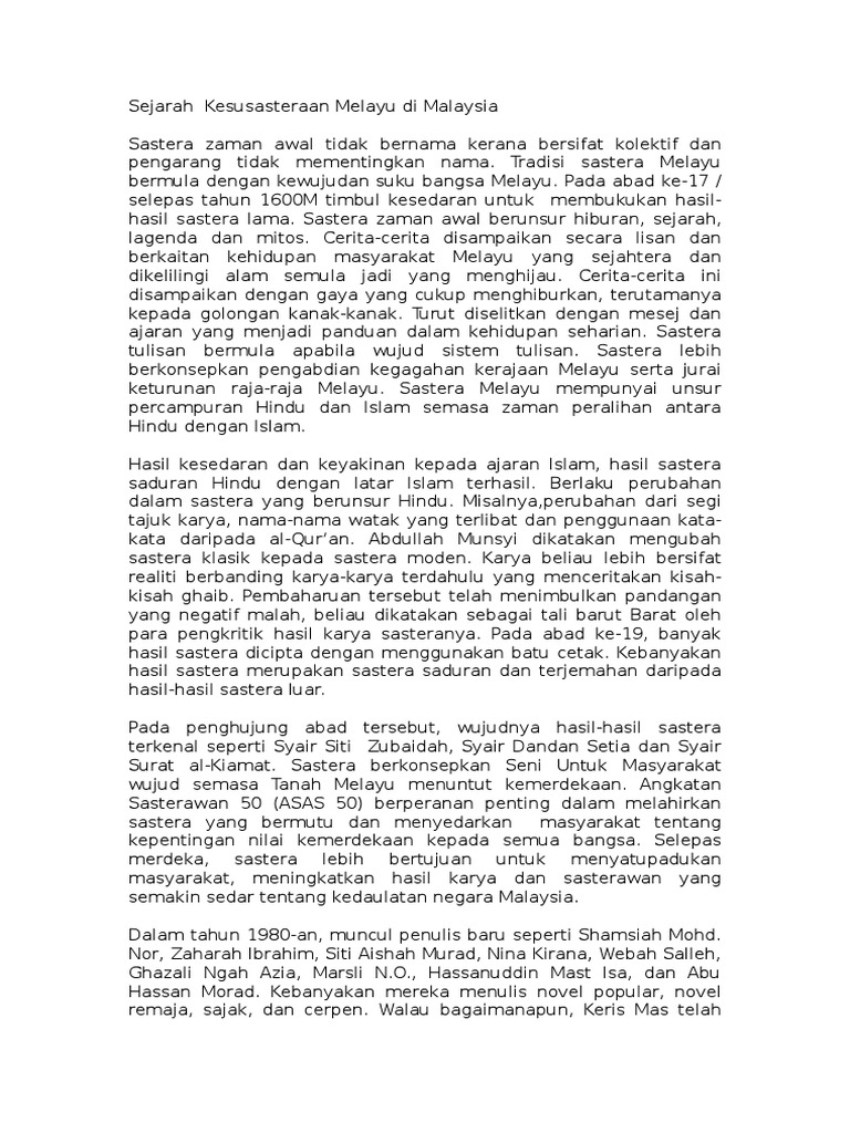 Nota Sejarah Kesusasteraan Melayu Di Malaysia Docx