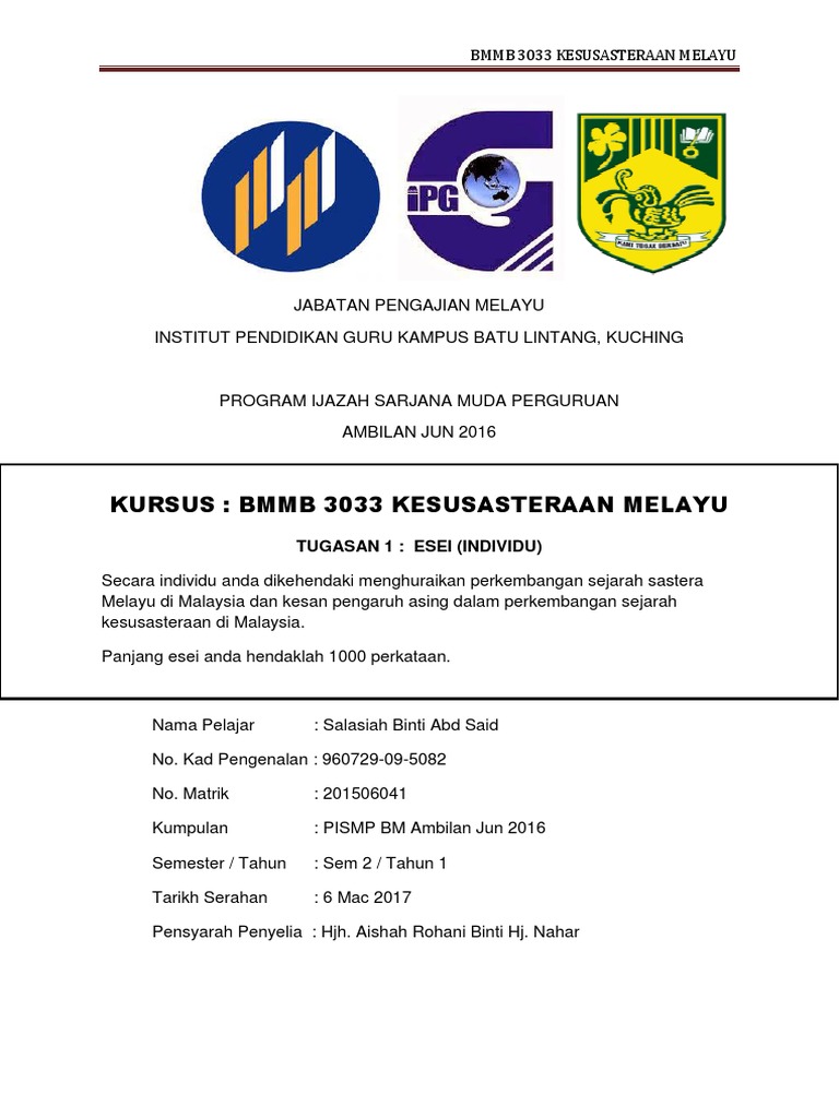 Kerja Kursus Kesusasteraan Melayu