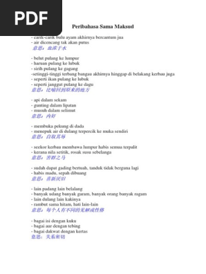 Eng S 学习站 Nota Peribahasa Yang Sama Maksud 同义马来谚语