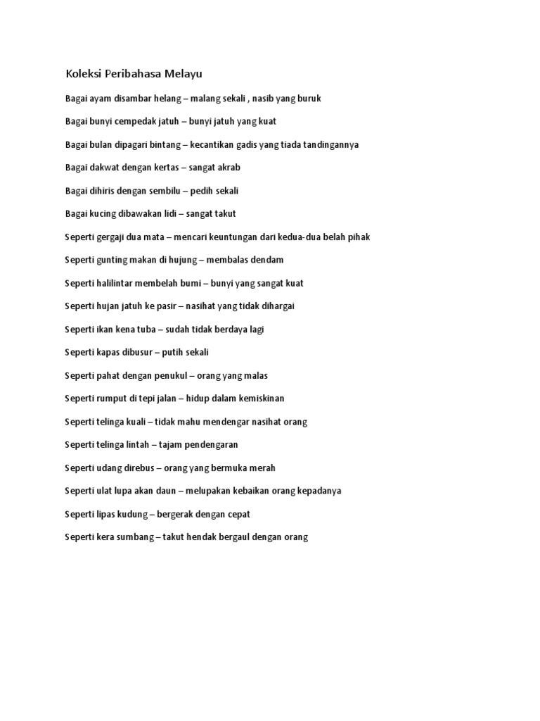 Penggunaan Peribahasa Docx Bidalan Pepatah Perumpamaan 谚语 格言 喻言 Perumpamaan 比喻言用来比较两 事物 通常会用开头词 Course Hero