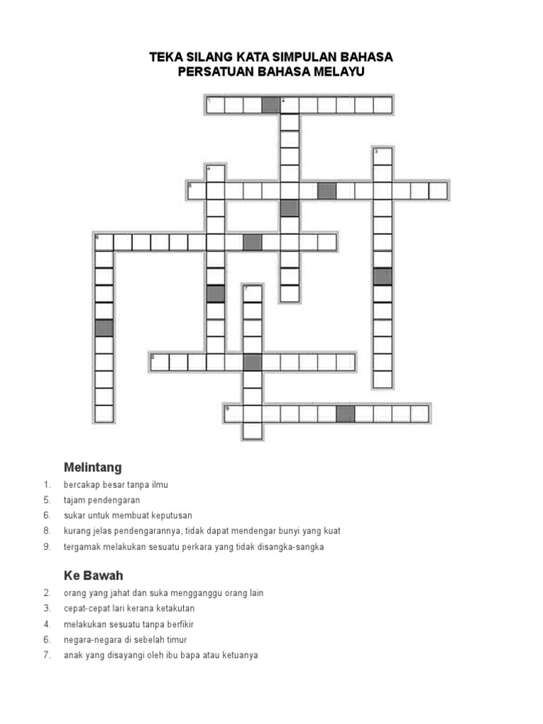 Himpunan Permainan Teka Silang Kata Bahasa Melayu Sekolah Rendah Yang Sangat Hebat Untuk Guru Guru Download Pekeliling Terbaru Kerajaan