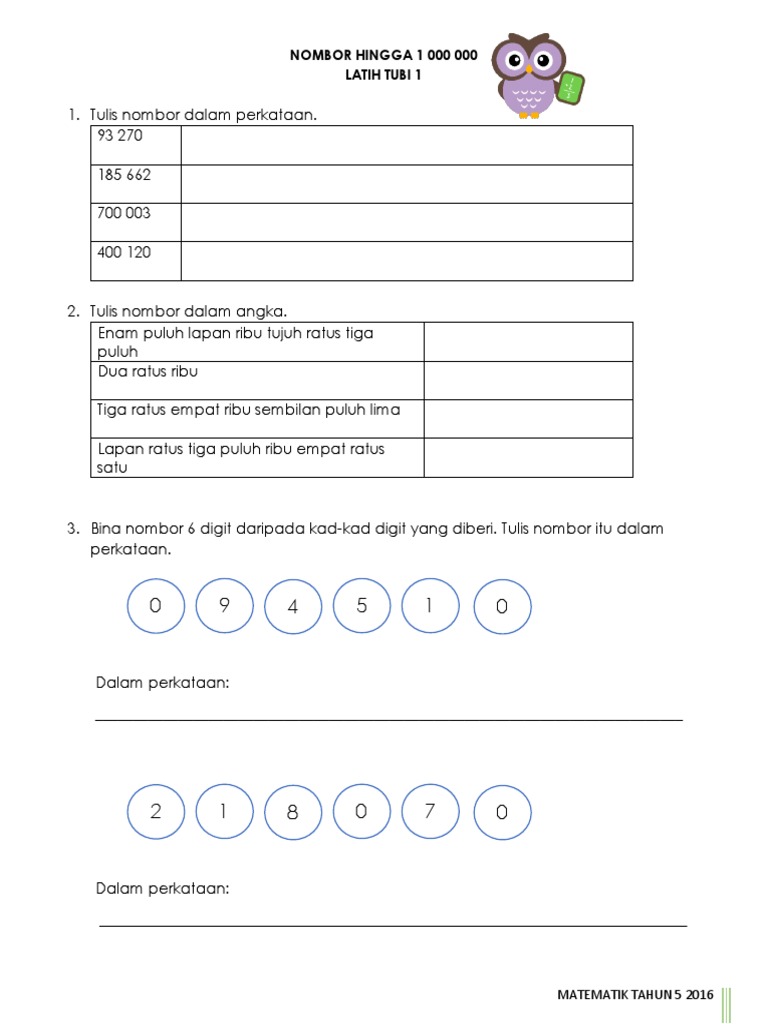 Latih Tubi 1 Nombor Hingga 1 000 000